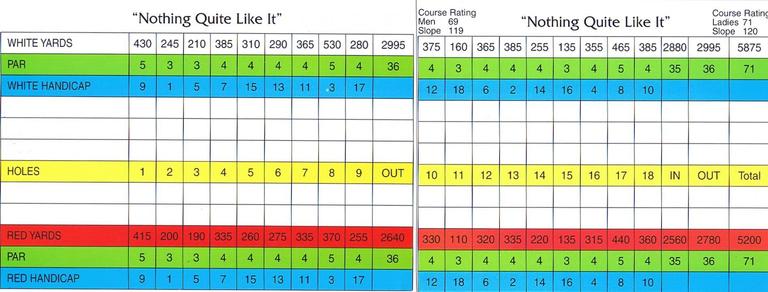 Scorecard Windermere Valley Golf Course